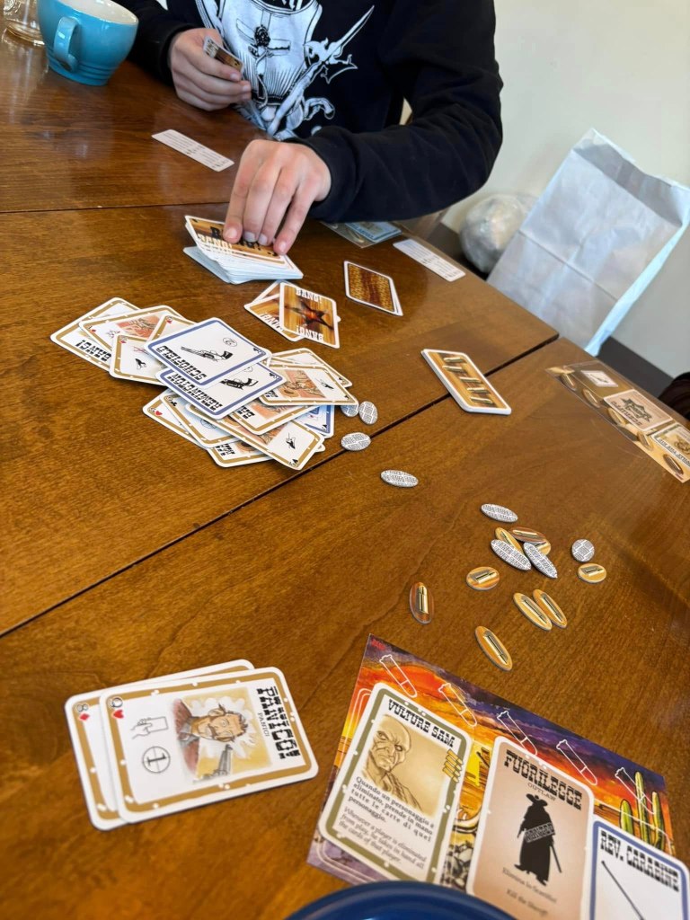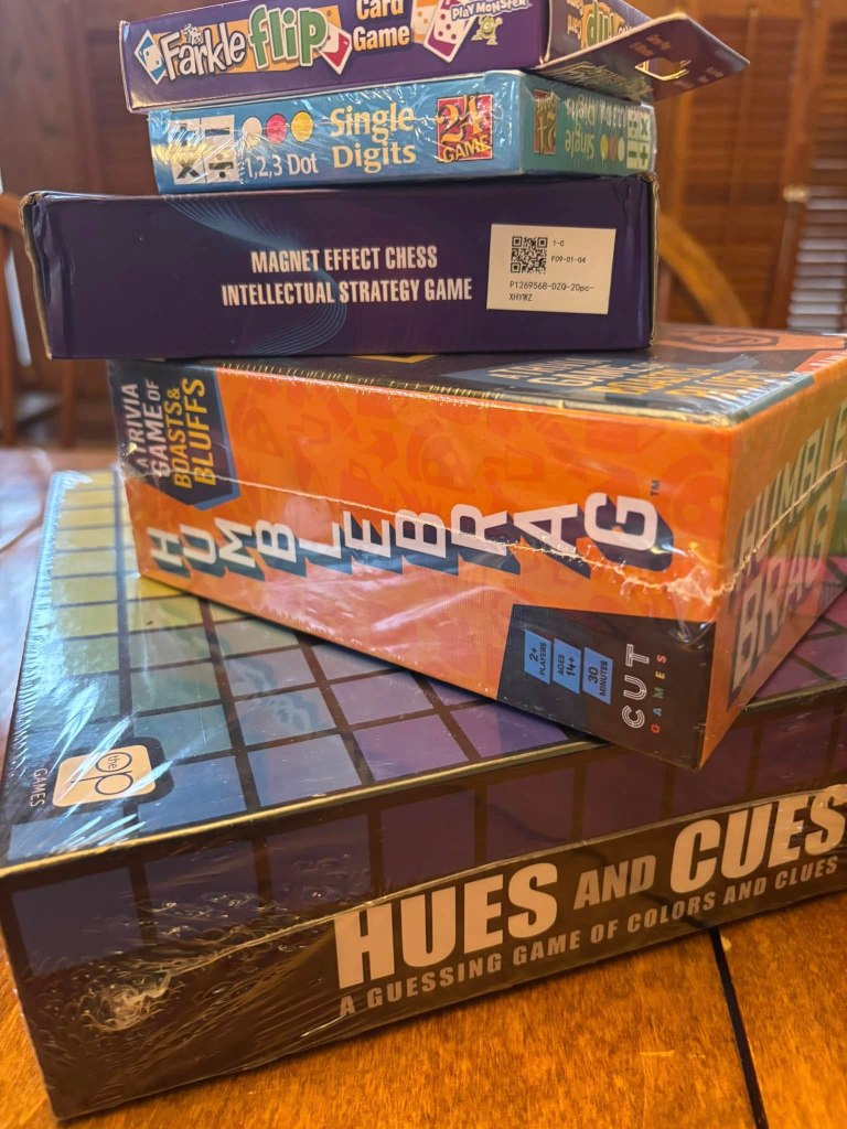 We play games and laugh.