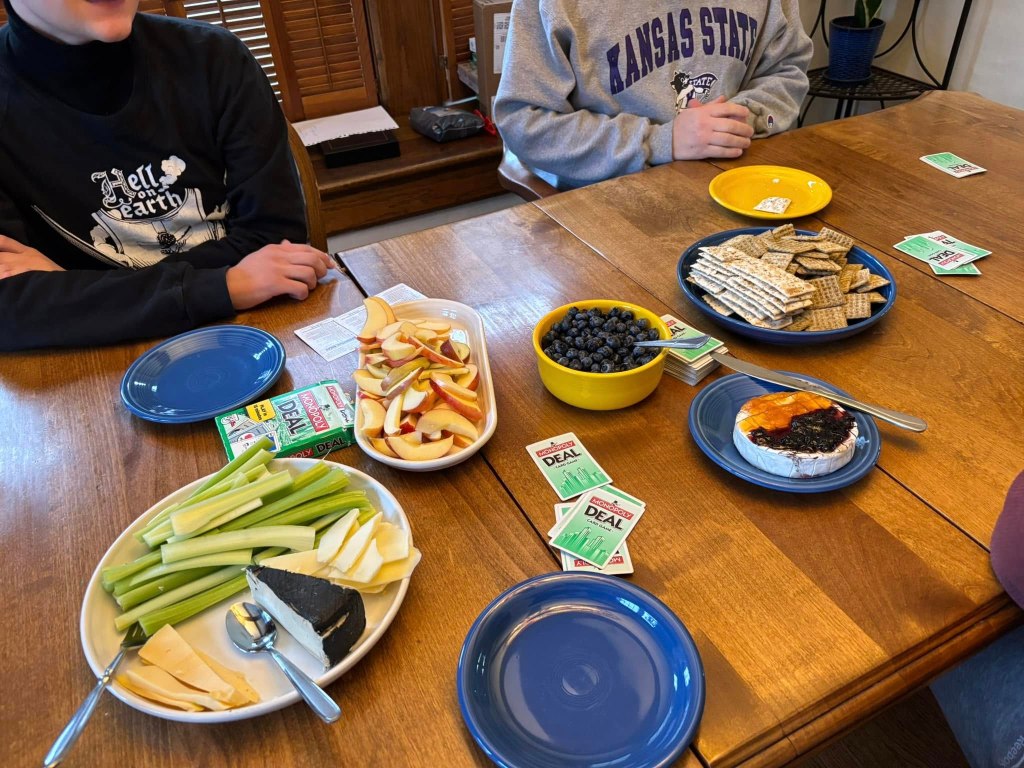 We eat favorite foods–shellfish on Christmas Eve, ebelskivers with jam, fancy cheeses–and meals that remind us of our families, like pork and sauerkraut on New Year’s Day.