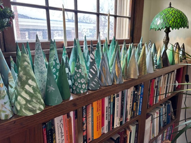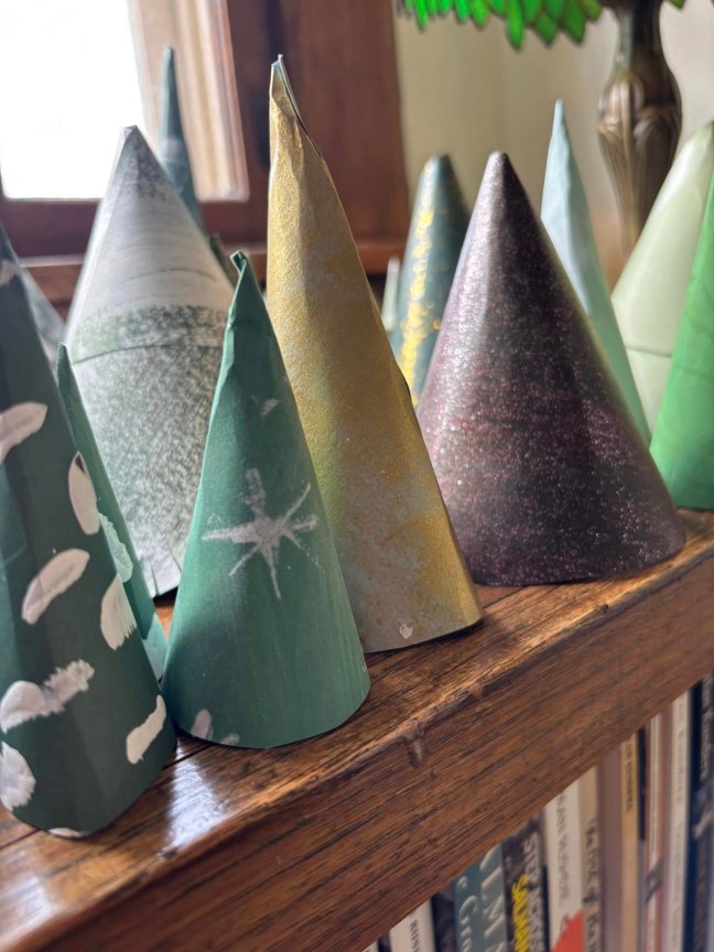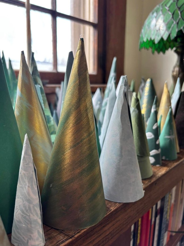 We built a forest of paper evergreens.